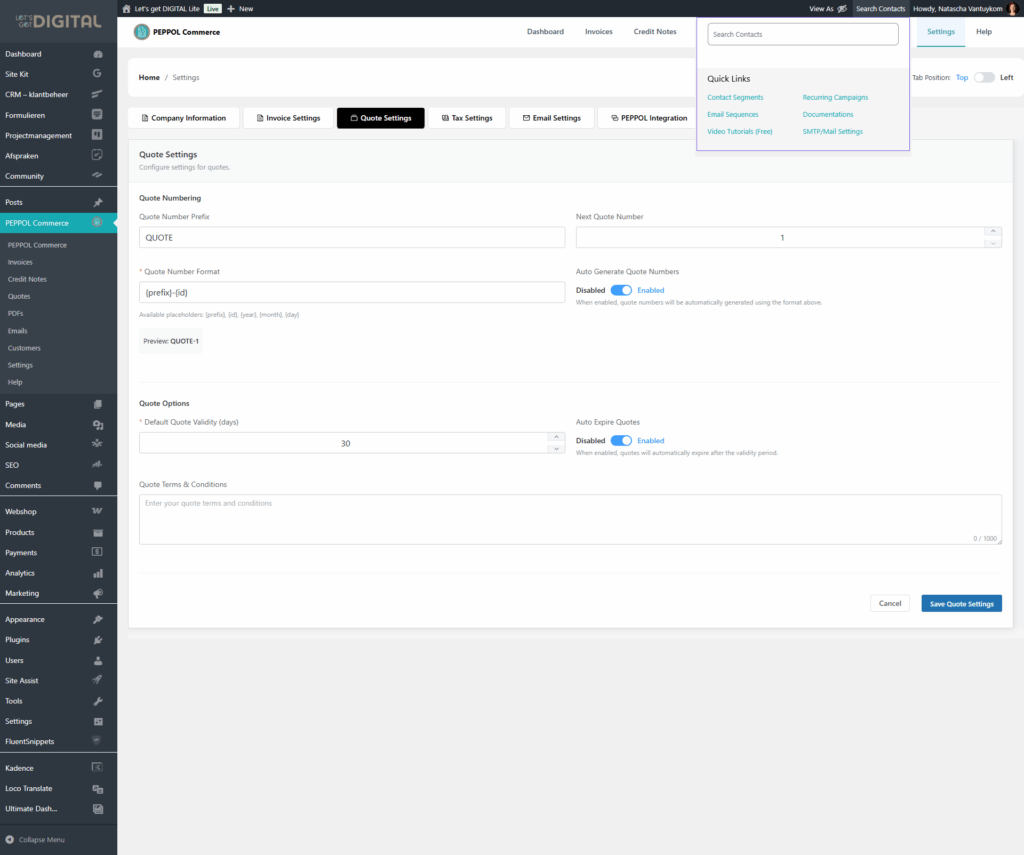 Wanneer toepasselijk kan de plugin gebruikt worden om offertes aan te maken, die na goedkeuring omgezet kunnen worden in e-facturen.